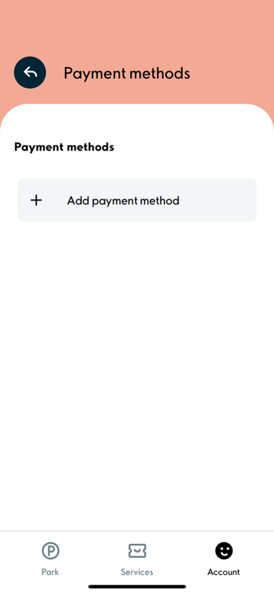 1. To add a payment card, choose the "Account" tab in the bottom right corner. Next, choose Payment methods.