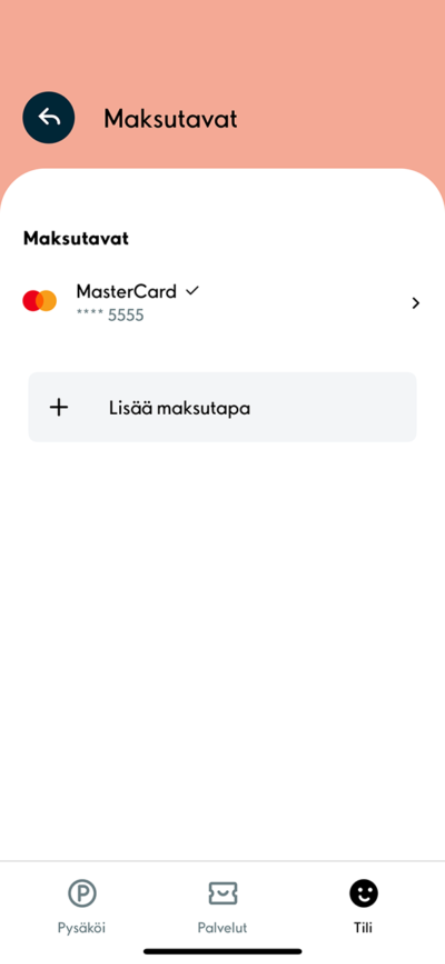 PLEASE NOTE! Should you have an active parking permit, remember to add the new payment card as the permit's payment method. Your active permits are shown in the "Services" tab. Should you wish to edit your permit, choose the permit beneath the "My permits" header.