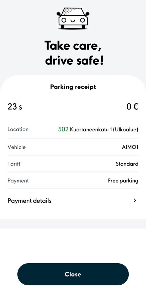 You can also find parking information in the "Account" -window of the application, in the "Parking & charging" tab.