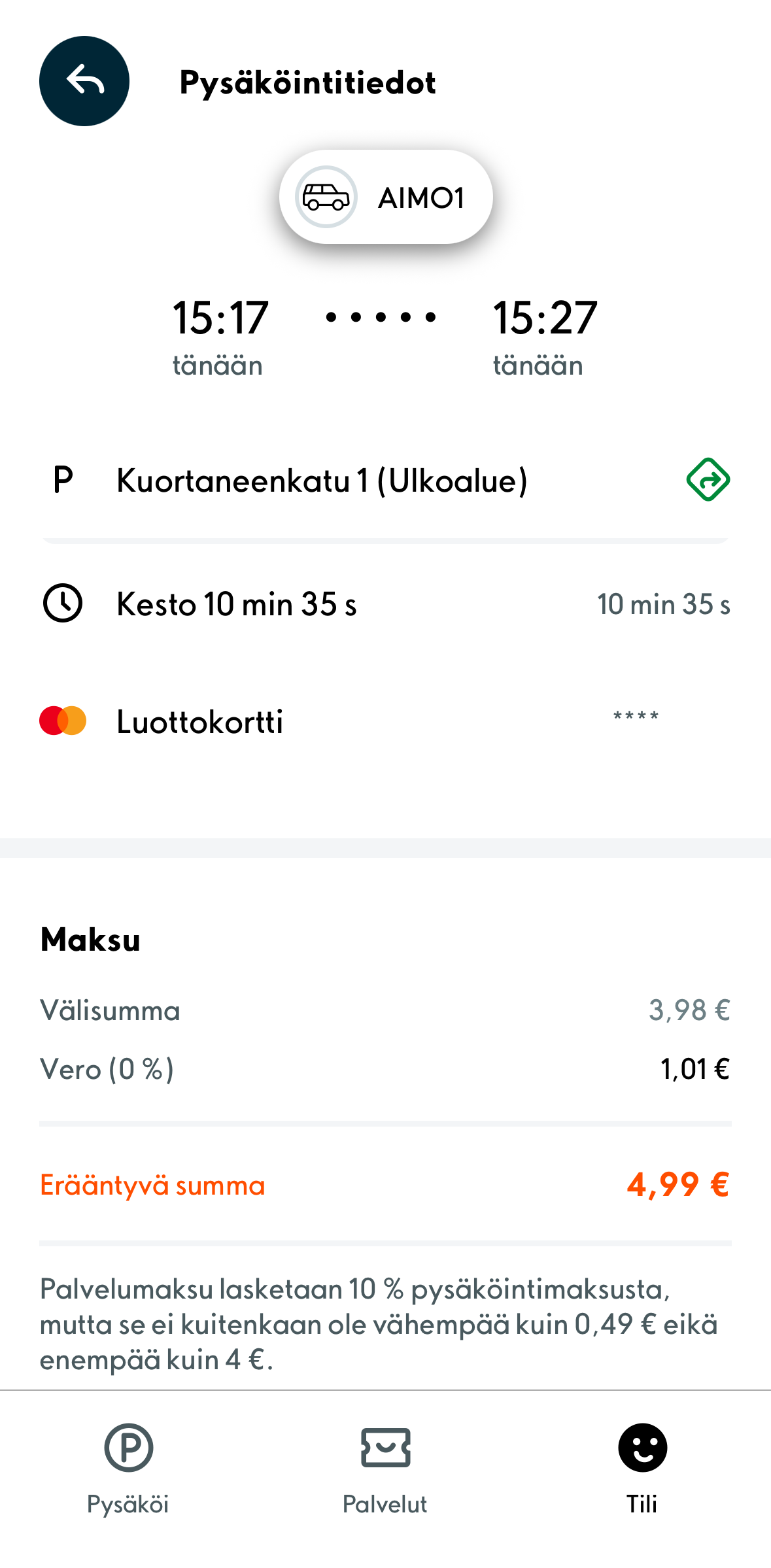 Jos haluat vaihtaa pysäköintitapahtumalle toisen maksukortin, paina maksukortin kuvaketta.