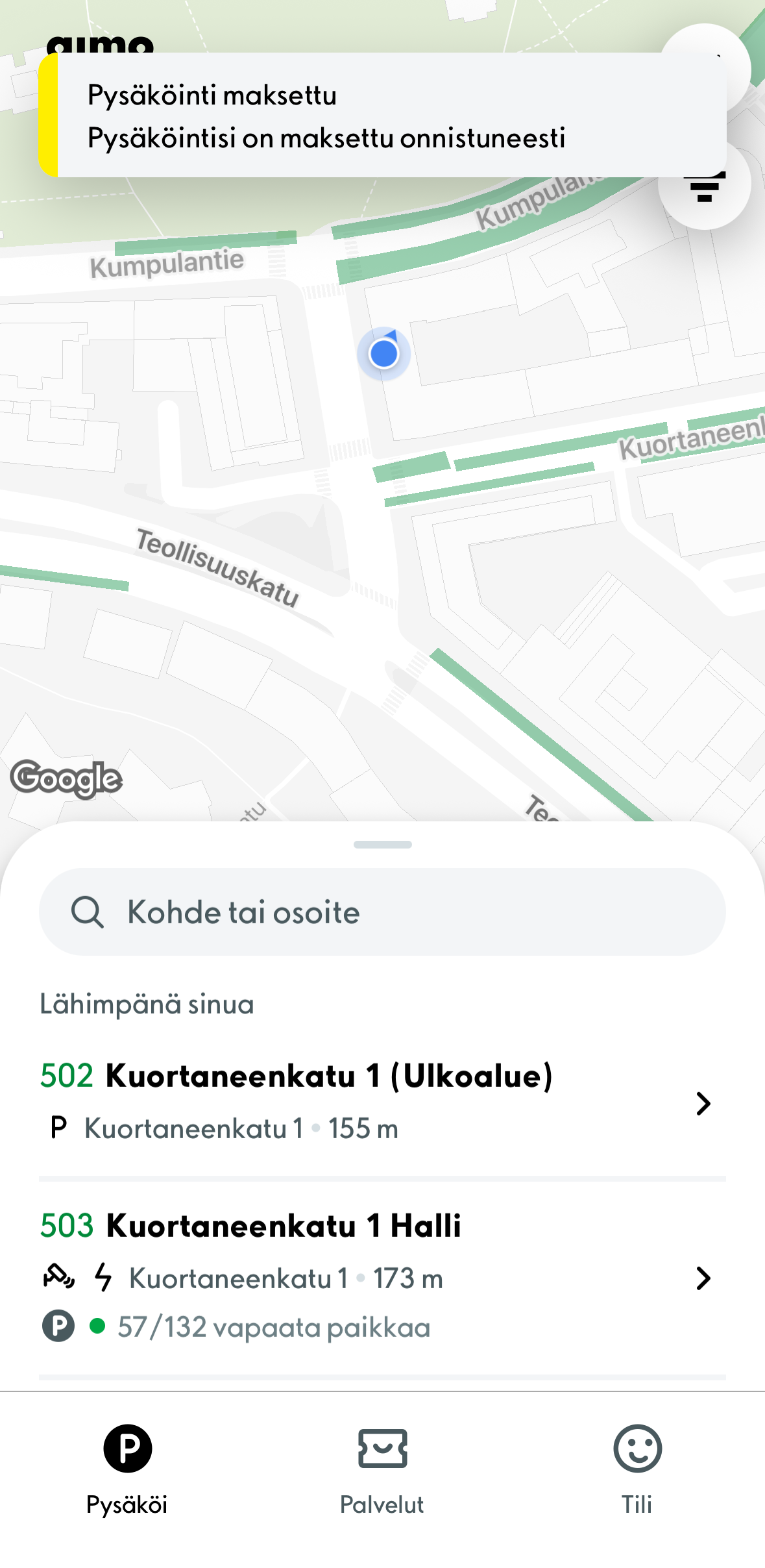 4. Onnistuneesta veloituksesta saat kuitin sähköpostiin. Saat kuitin myös sovelluksesta Tili > Pysäköinti & Lataaminen > Kuitit
